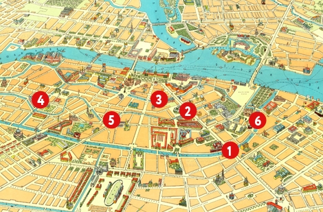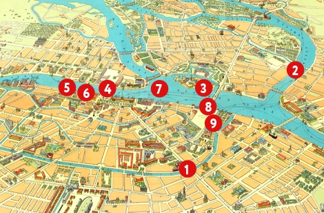 Здесь мы пройдем вдоль гранитных набережных, где увидим прекрасные творения зодчих мастеров. Одними из них предстанет перед нами «Храм Спаса на крови» — единственный в мире православный собор, мозаичное убранство которого составляет 7065 кв.м. внешние стены и все внутреннее убранство храма покрыто мозаичным ковром из икон и орнаментов.